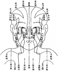 前额 forehead   眼窝 eye sockets   眉骨 eyebrows   脸颊 cheeks    头后 back of the head    头顶 top of the head   颈部 neck   耳后 behind the ears  耳前 in front of the ears
